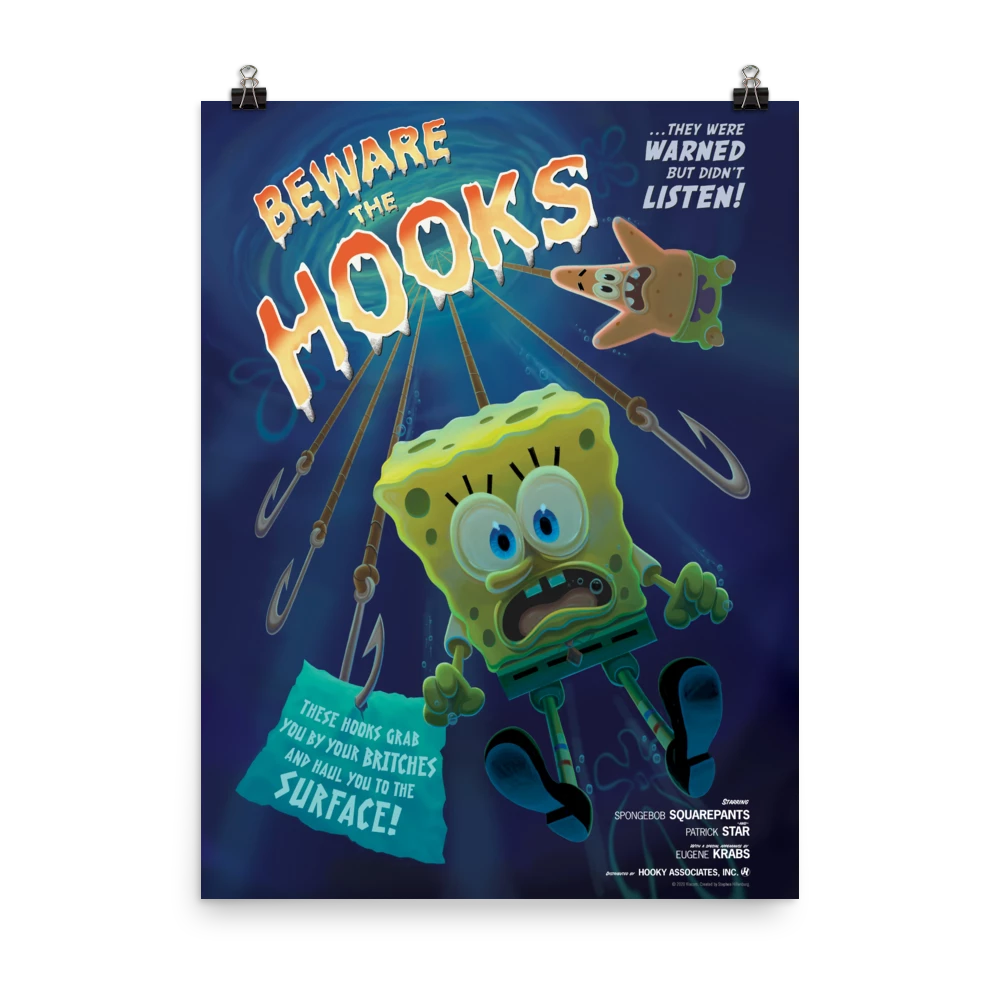 Beware the hooks! This SpongeBob Beware The Hooks Poster is the perfect addition to your decor this Halloween. No matter where you hang it, this poster will have you looking over your shoulder for those haunting hooks all season long!