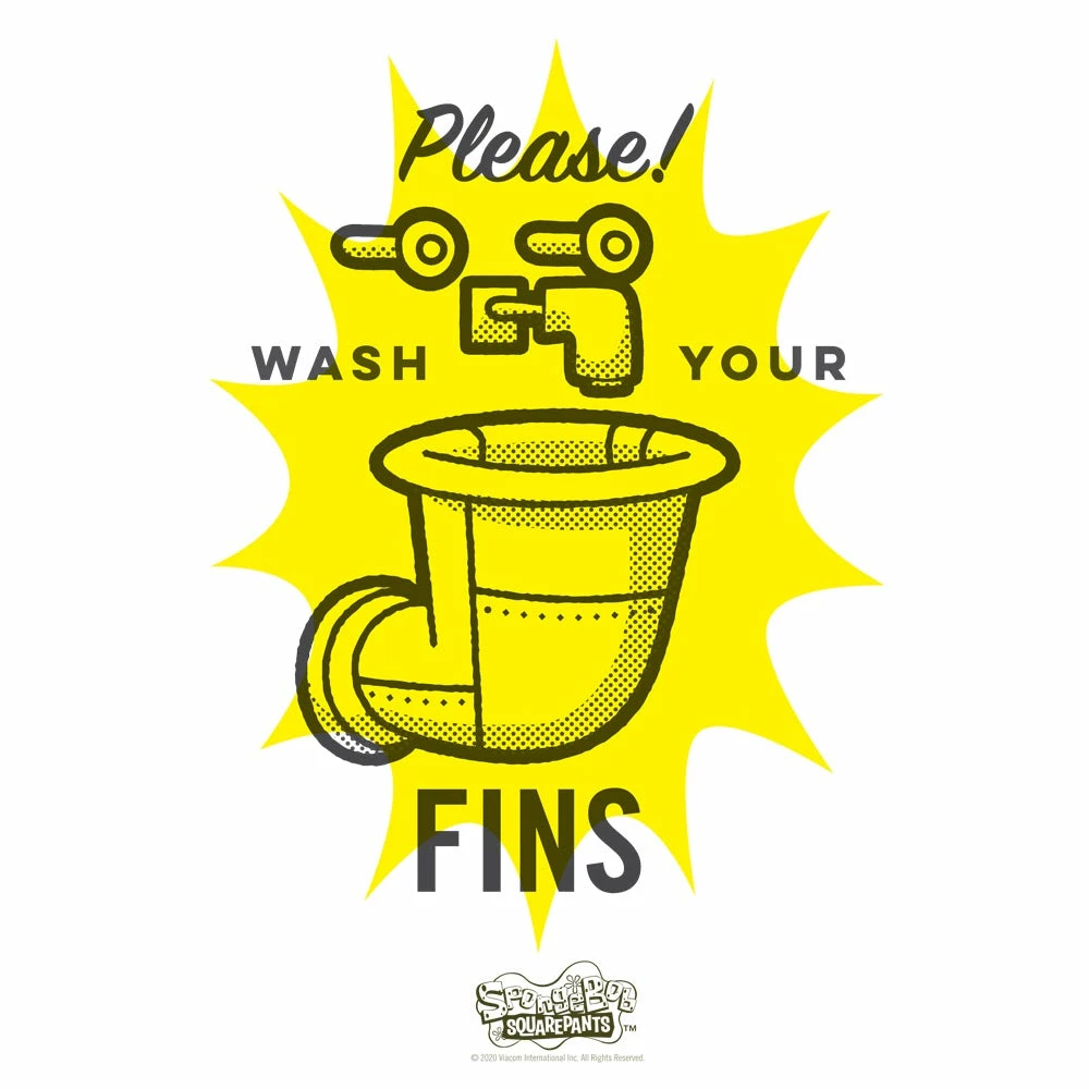 Only a barnacle head wouldn’t wash their fins throughout the day! Whether you place this Wash Your Fins Poster in your pineapple home’s kitchen or bathroom, this poster is a F.U.N. reminder to make sure that those fins, claws, and palms are squeaky clean.
