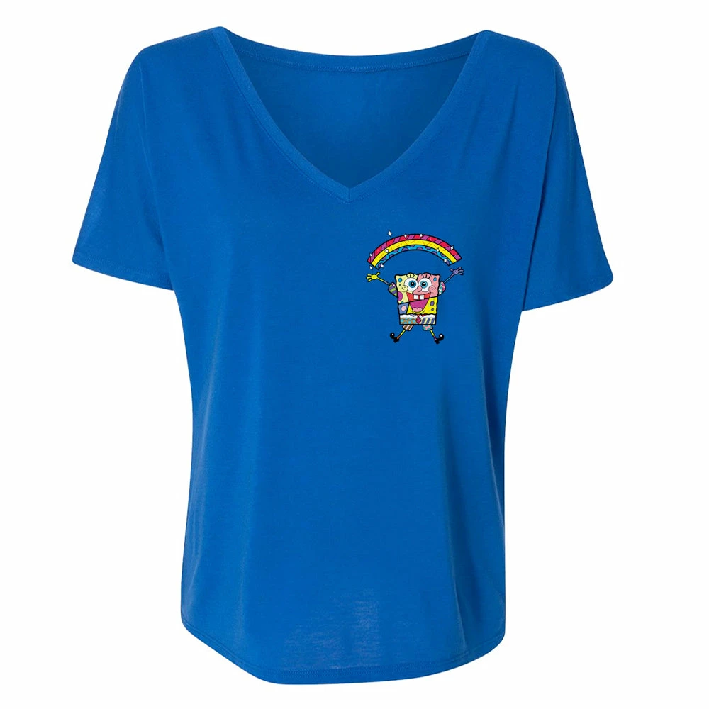 Oh, buoy! This SpongeBob SquarePants Britto Rainbow Women’s Slouchy V-Neck T-Shirt will make you feel like a rare doubloon. This t-shirt design was created by pop artist Romero Britto to celebrate 20 years with our favorite undersea fry cook.