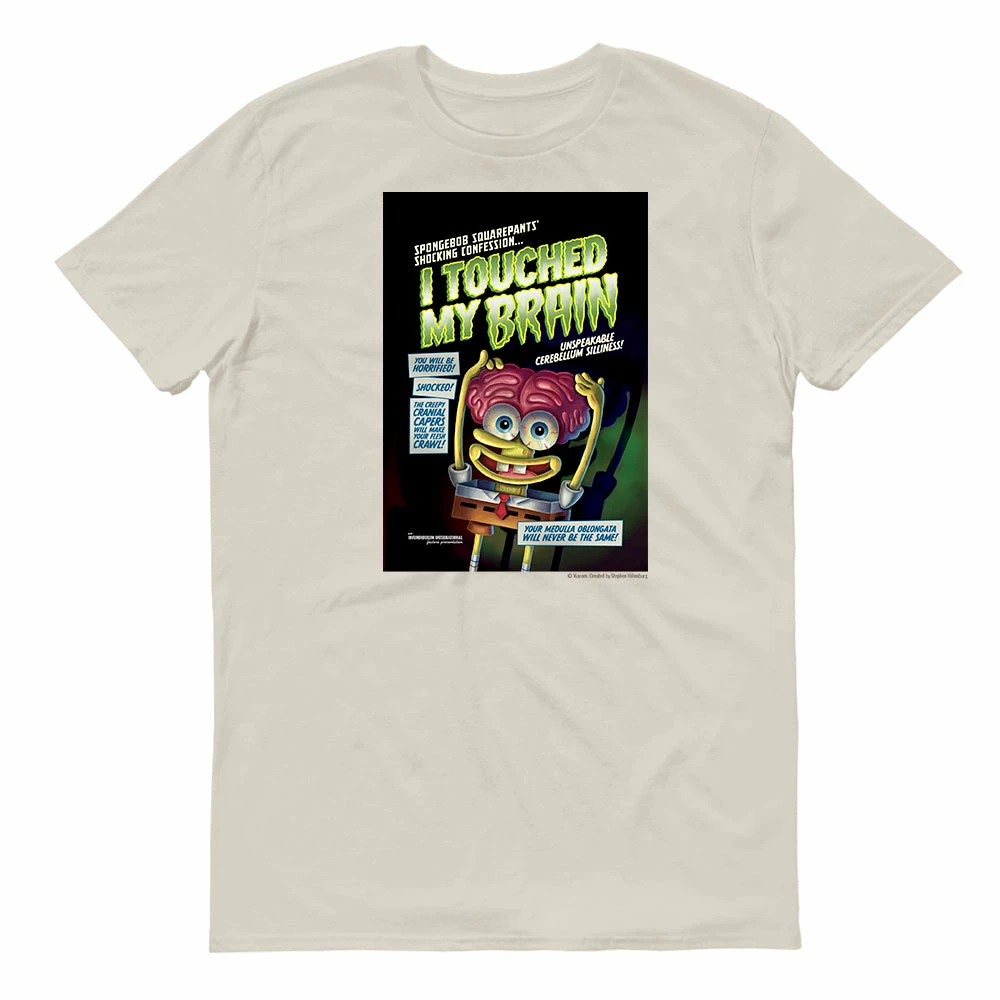 Shave me down, make me round! Creepy enough to scare even the Flying Dutchman, this SpongeBob I Touched My Brain Short Sleeve T-Shirt is sure to be a fang-tastic addition to your wardrobe! From Jellyfish Fields to the Krusty Krab, this tee will become your favorite look.