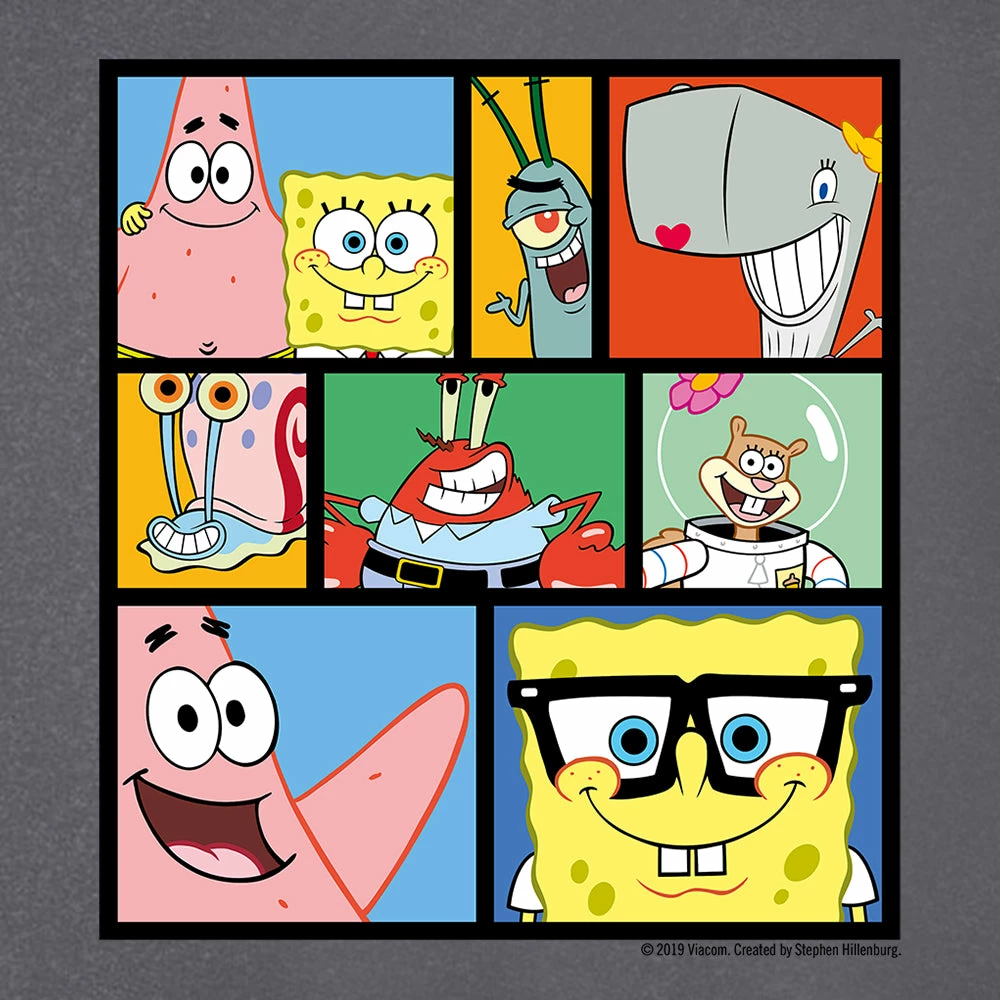 More precious than doubloons, friendship is something that will always brighten up our day, especially when those friends are SpongeBob, Patrick, Plankton, Pearl, Gary, Mr. Krabs, and Sandy! Represent the best pals in Bikini Bottom with this SpongeBob SquarePants Characters Grid Kids tee.