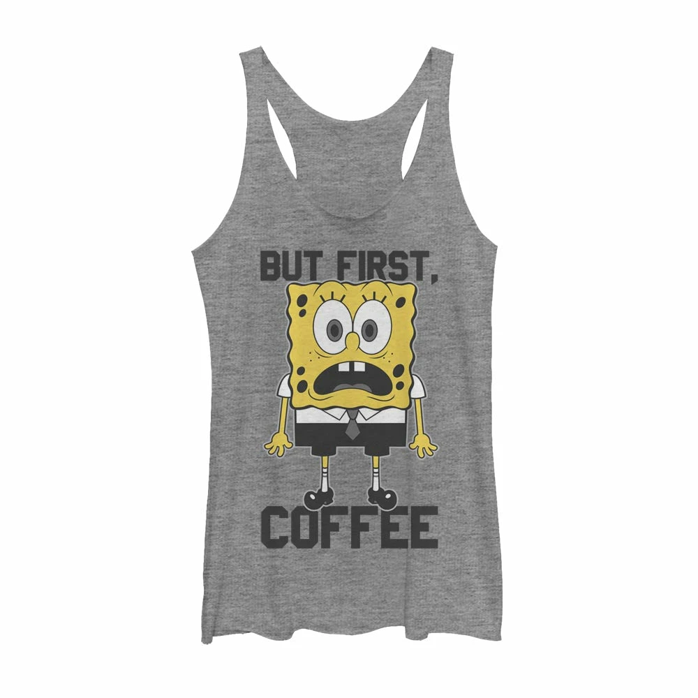 Even someone as ecstatic and energetic as SpongeBob needs some morning joe! Get your day started by pouring your favorite cup of coffee while wearing this SpongeBob SquarePants First Coffee Women’s Racerback Tank Top to have a positive morning!