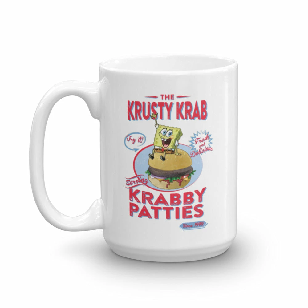 You don’t need a license to drive a sandwich. From taking Patrick and SpongeBob around as a vehicle to making Squidward admit that he loves something, a Krabby Patty can pretty much do anything! Enjoy the yummiest meal in the deep blue sea and Bikini Bottom’s favorite fry cook whenever you use The Krusty Krab Krabby Patties white Mug!