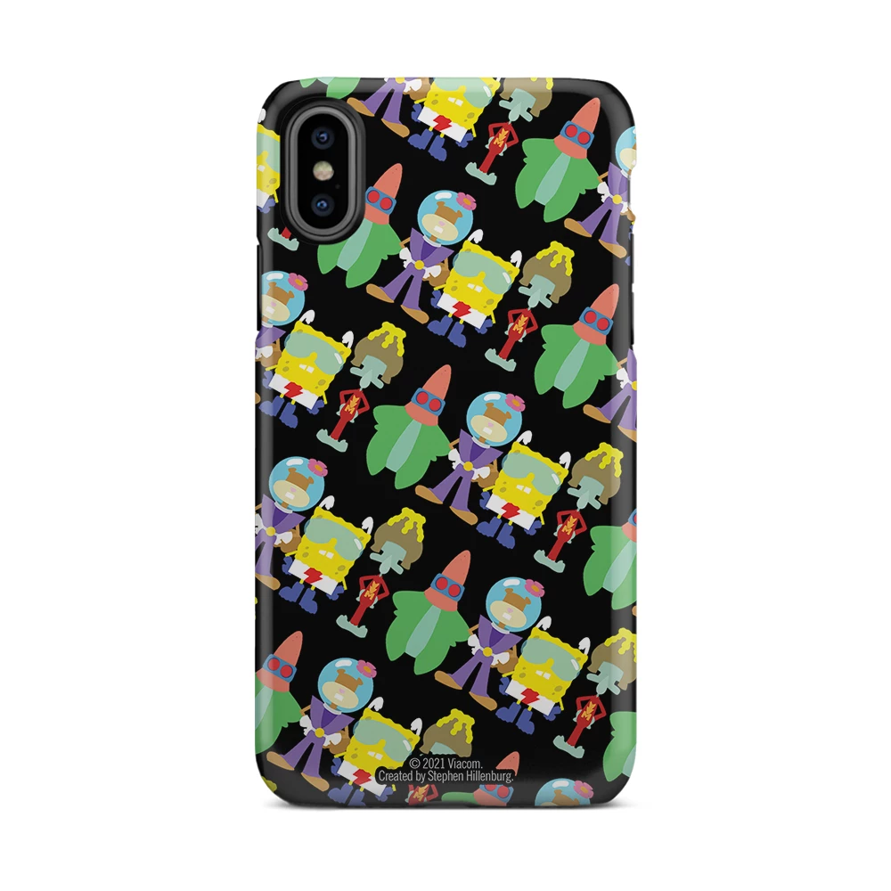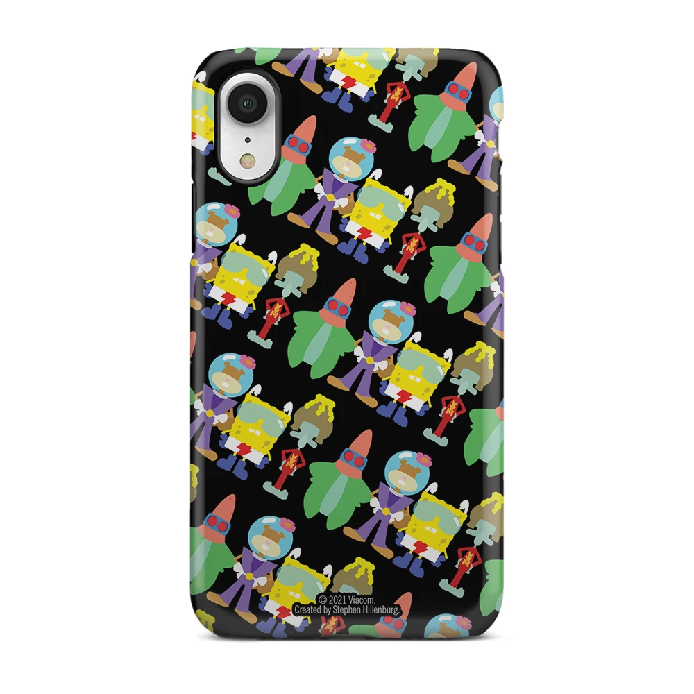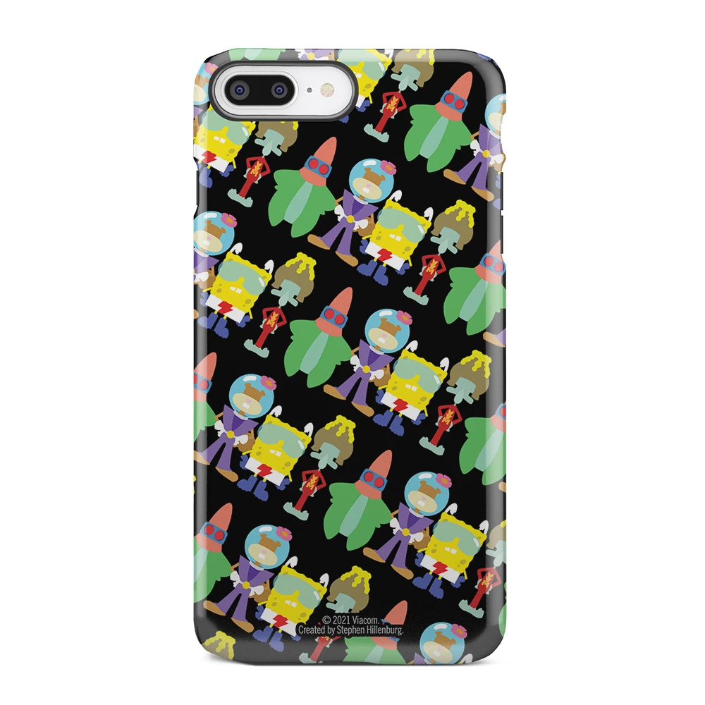 Durable and scratch resistant, this SpongeBob SquarePants IJLSA Phone Case lets you keep your shellphone safe while celebrating the efforts of the Elastic Waistband, Miss Appear, the Quickster, and Captain Magma. Featuring a pattern of the International Justice League of Super Acquaintances, this phone case is a super cool addition to your mobile device. Â