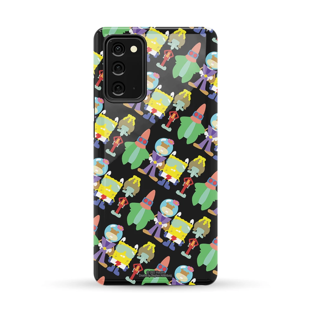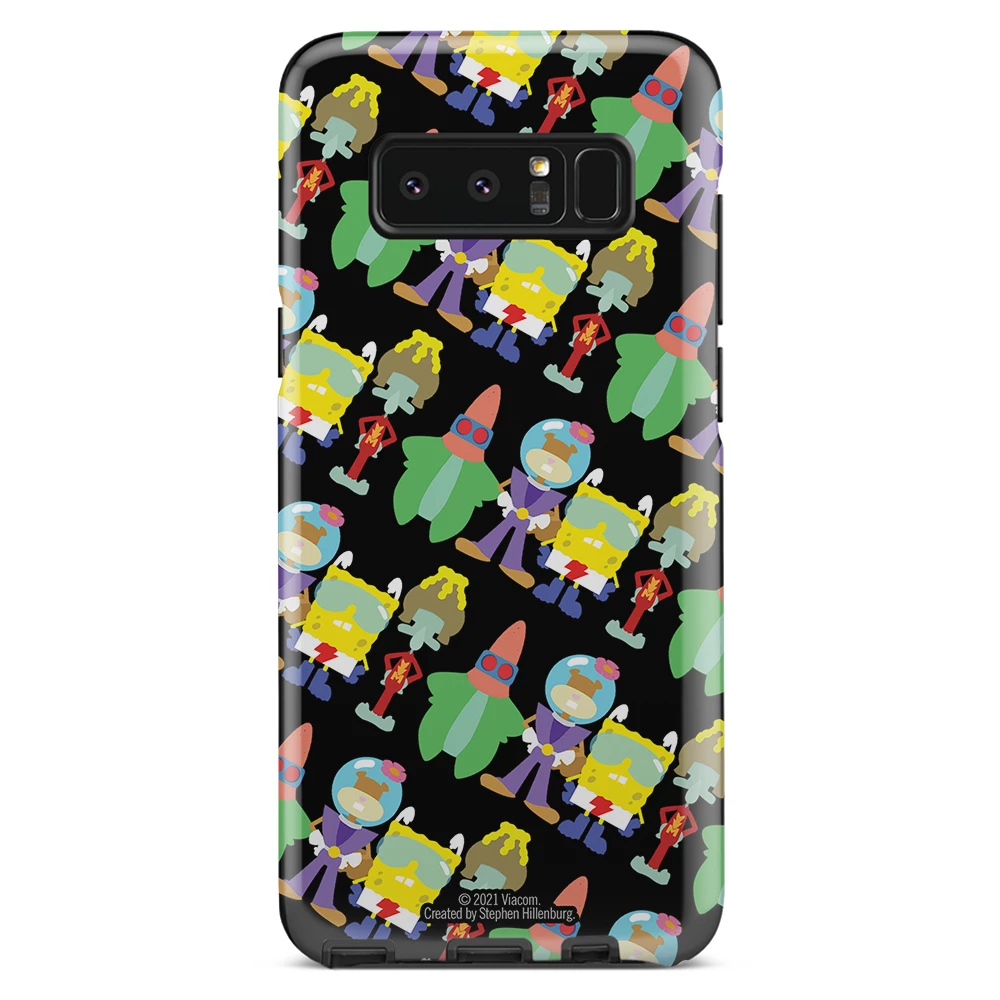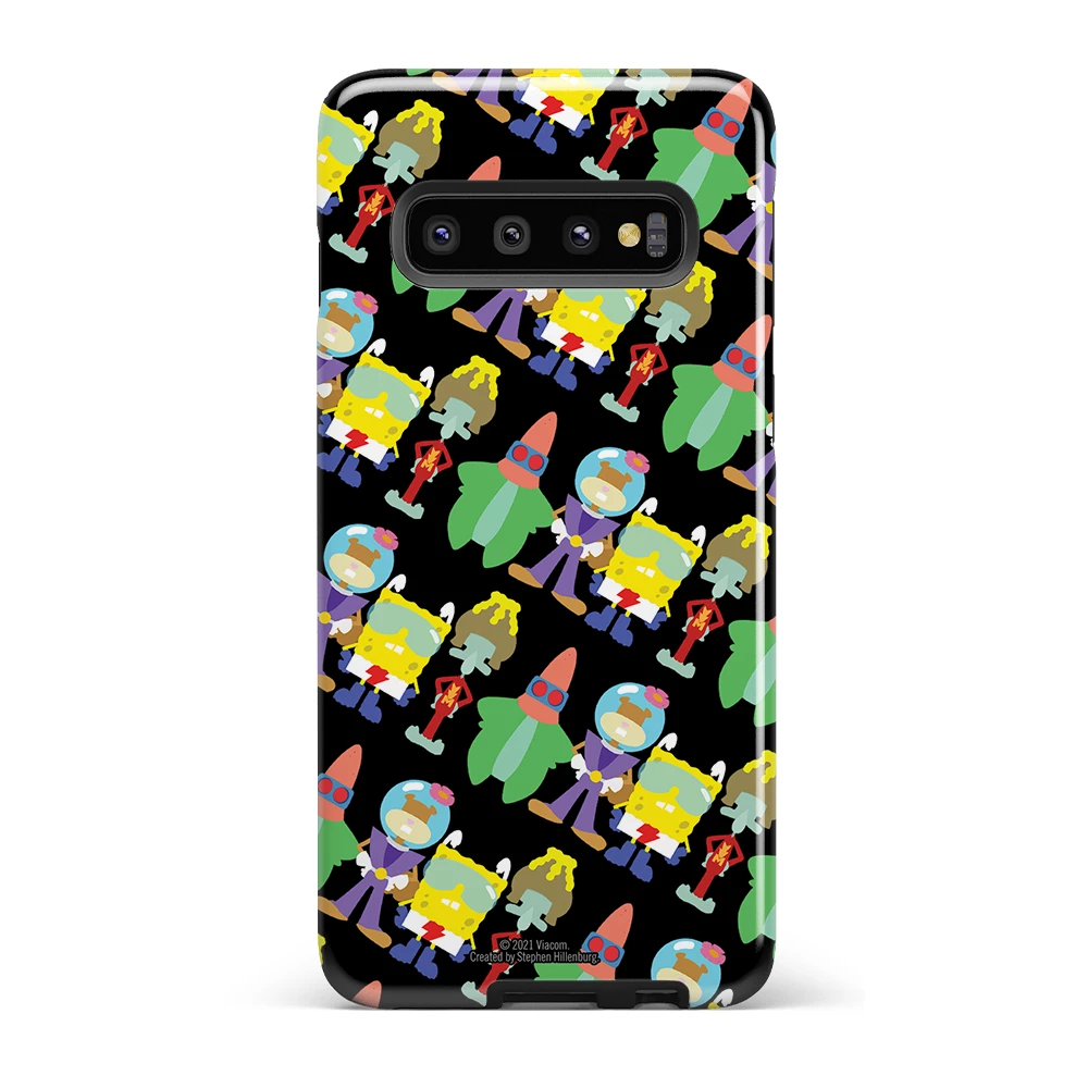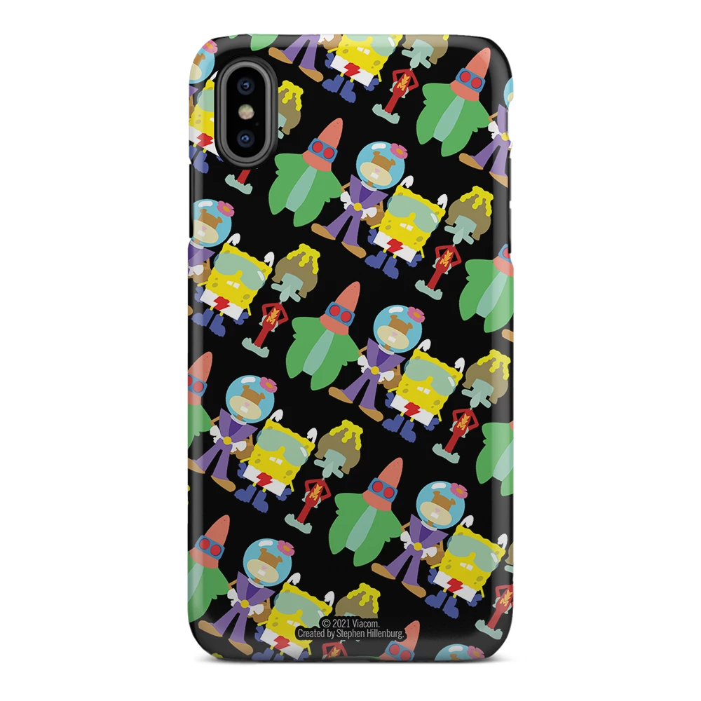 Durable and scratch resistant, this SpongeBob SquarePants IJLSA Phone Case lets you keep your shellphone safe while celebrating the efforts of the Elastic Waistband, Miss Appear, the Quickster, and Captain Magma. Featuring a pattern of the International Justice League of Super Acquaintances, this phone case is a super cool addition to your mobile device. Â