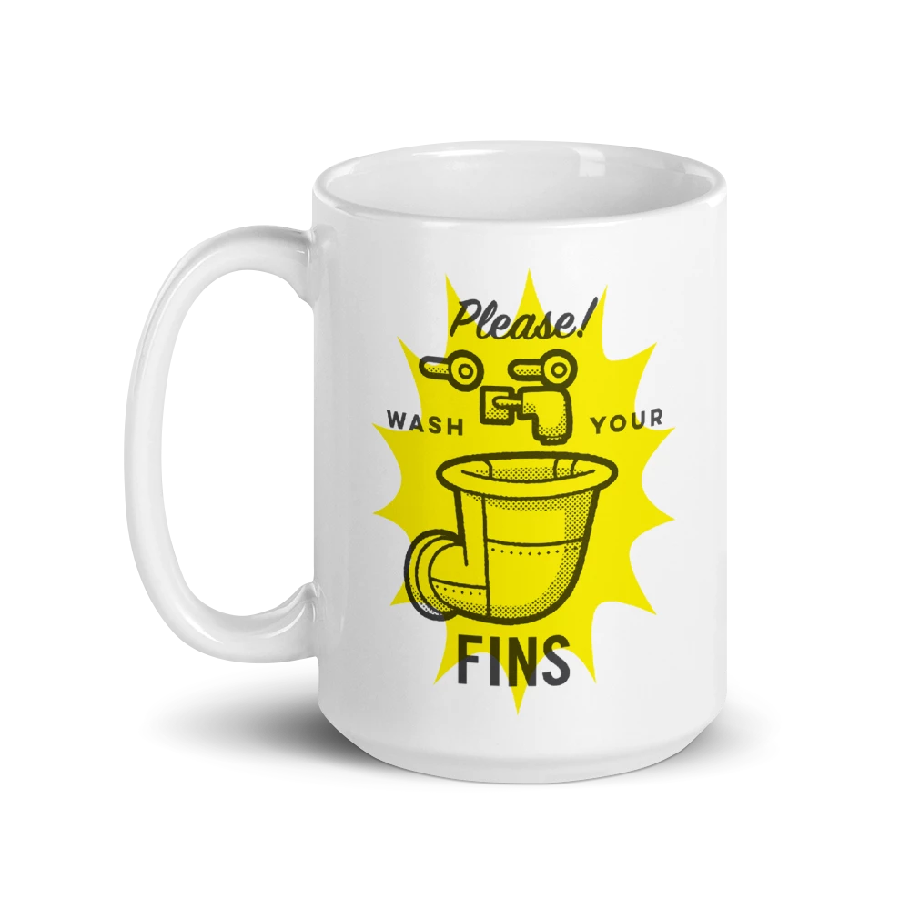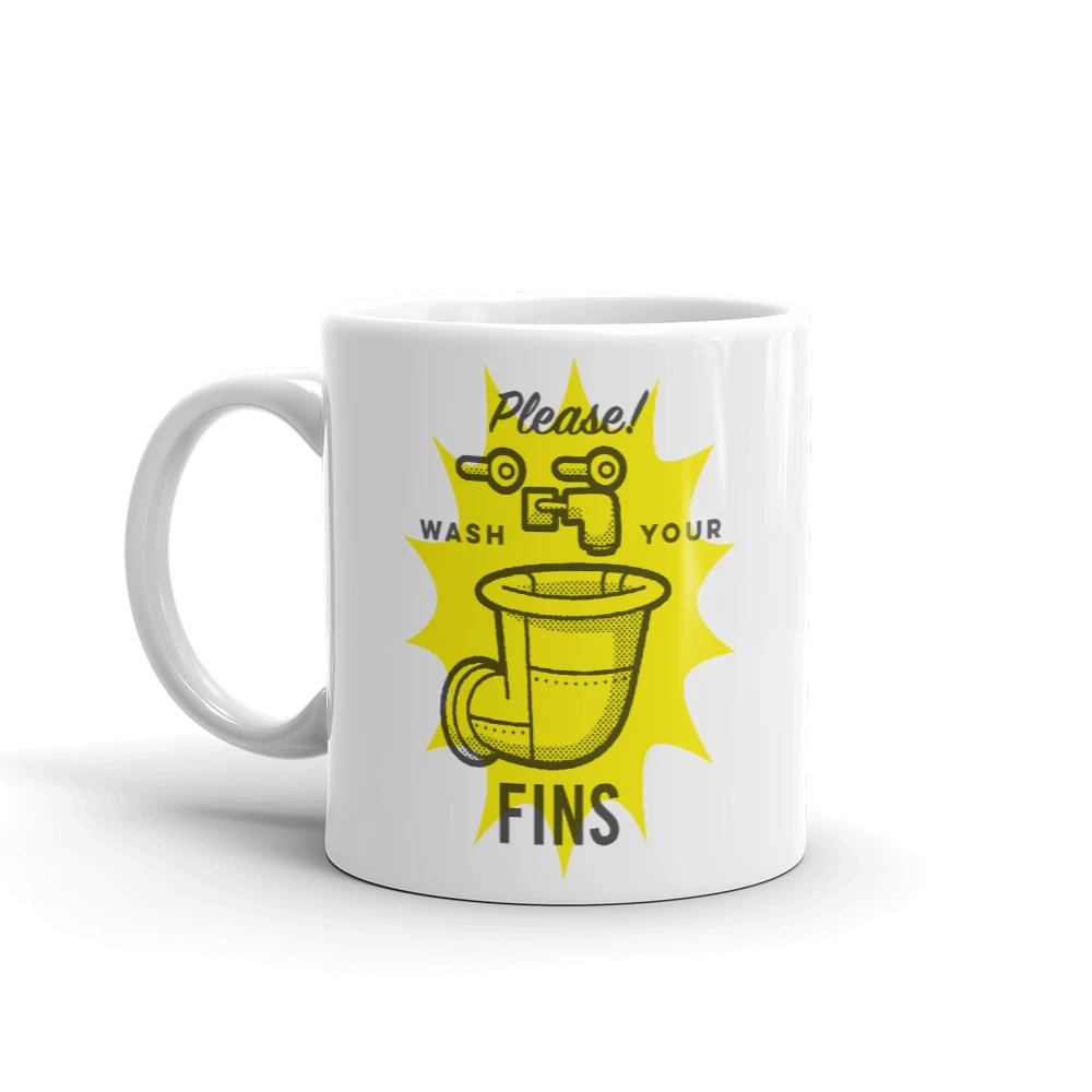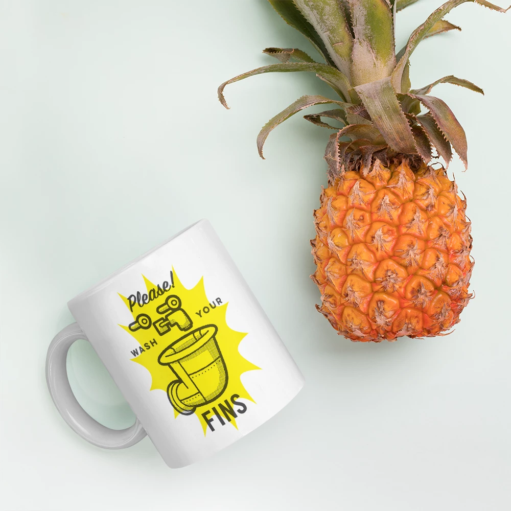 Do you want a F.U.N. reminder to always wash your fins? Then X marks the spot! Featuring a colorful Wash Your Fins sign front and center, this Wash Your Fins White Mug will help you practice good hygiene long after you had your morning coffee.