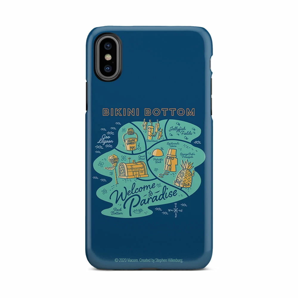 Say ~shell-o~ to your new favorite phone case! Featuring a stylized map of Bikini Bottom complete with the Krusty Krab, SpongeBob’s pineapple home, Goo Lagoon, and more, this durable SpongeBob SquarePants Welcome to Paradise Phone Case lets you take a little bit of paradise with you everywhere you go.