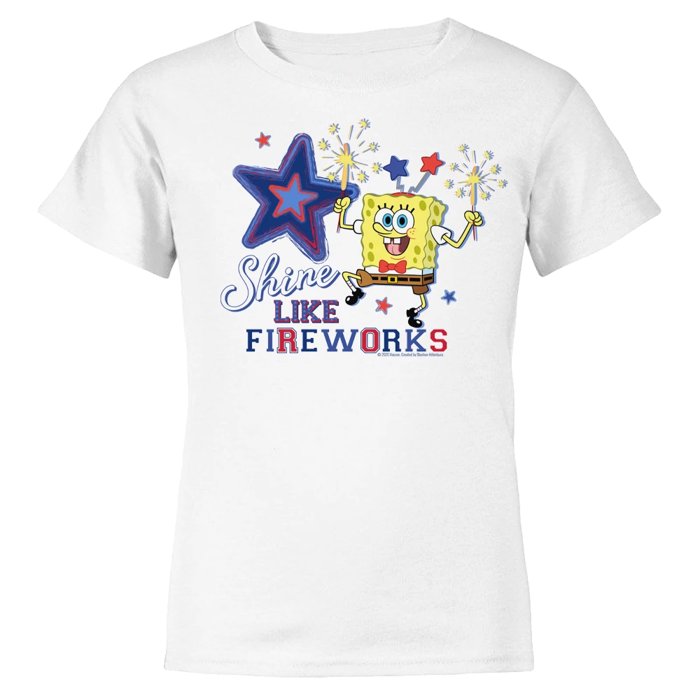 Your little scallop will shine like a firework in this adorable SpongeBob SquarePants Shine Like Fireworks Kids Short Sleeve T-Shirt! Featuring a patriotic SpongeBob front and center, this comfy tee is perfect for family BBQs, Fourth of July festivities, and F.U.N. summer afternoons spent with their best pals.