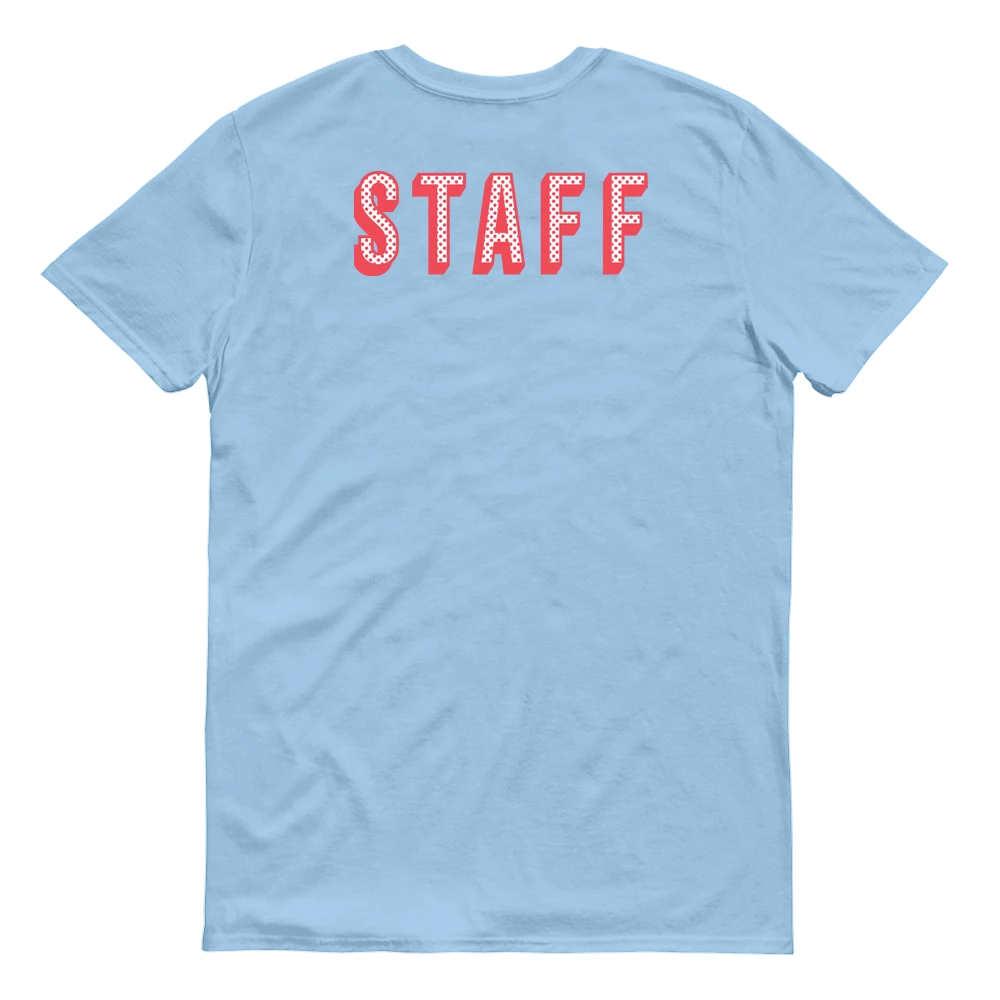 Get ready for your first shift in style with this comfy The Krusty Krab Staff Adult Short Sleeve T-Shirt. Featuring the Krusty Krab on the upper left chest and “STAFF” on the back, this short-sleeve tee will leave you saying, “I’m ready, I’m ready, I’m ready…to serve up smiles!”