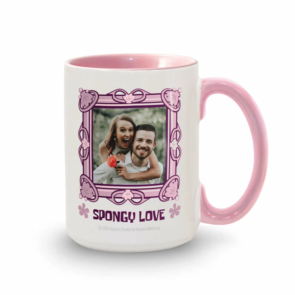 This SpongeBob Spongy Love Photo Upload Two Tone 15oz Mug is the perfect gift to give that special someone this Valentine’s Day! Featuring adorable images of SpongeBob and Gary on one side and your very own image on the other, this two-tone mug will get any fan giddy with Valentine’s Day glee.