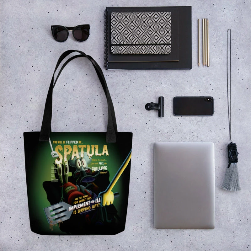 Are you ready to serve up some scares? Then this SpongeBob Flipped By the Spatula Tote Bag will do just the trick! Featuring a cowering Mr. Krabs and spooked Squidward, this roomy tote bag is thrillingly stylish.