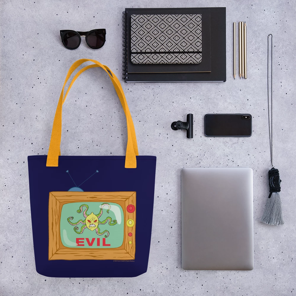 Whether you are fighting evil or simply heading to the Krusty Krab for lunch, you will love throwing this spacious SpongeBob SquarePants E.V.I.L. TV Tote Bag over your shoulder. Featuring the E.V.I.L. gang’s lemon mascot, this tote bag will be recognized by any SpongeBob SquarePants fan.