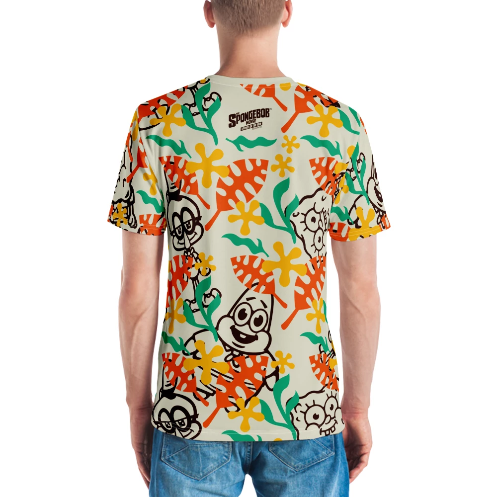 This Sponge on the Run Camp Coral Floral Adult Short Sleeve T-Shirt gives any style a F.U.N. pop of color! With a youthful SpongeBob, Patrick, and Squidward against a coral floral design, this tee is a unique addition to any look.