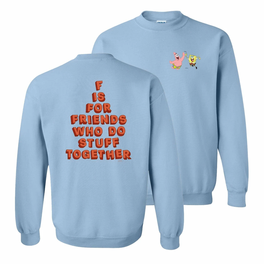 From eating Krabby Patties at 3 AM to spending a day at Goo Lagoon, you will love doing F.U.N. stuff with your best friend while wearing this SpongeBob SquarePants Do Stuff Together Crew Neck Sweatshirt. Featuring SpongeBob and Patrick on the upper left-hand chest and the F.U.N. song on the back, this sweatshirt is perfect for landlubbers and sea critters alike.